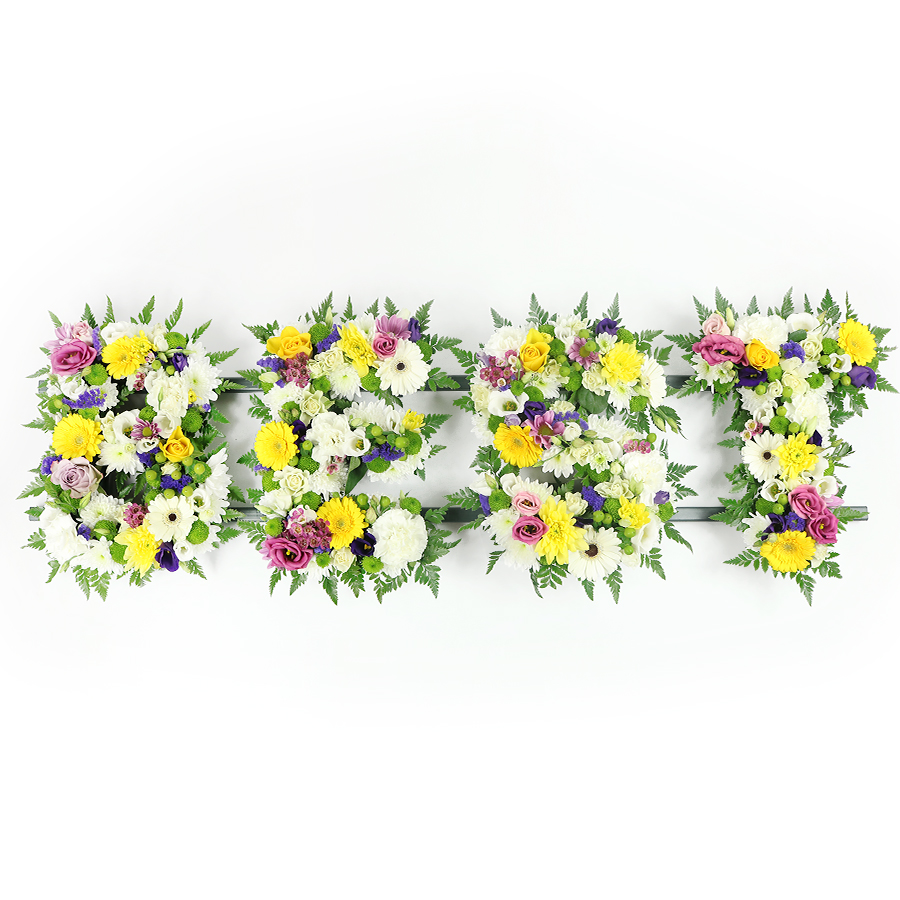 This beautiful tribute is crafted from fresh and delicate gerberas, chrysanthemums and roses. An arrangement that will touch the heart of everyone attending the memorial service.
