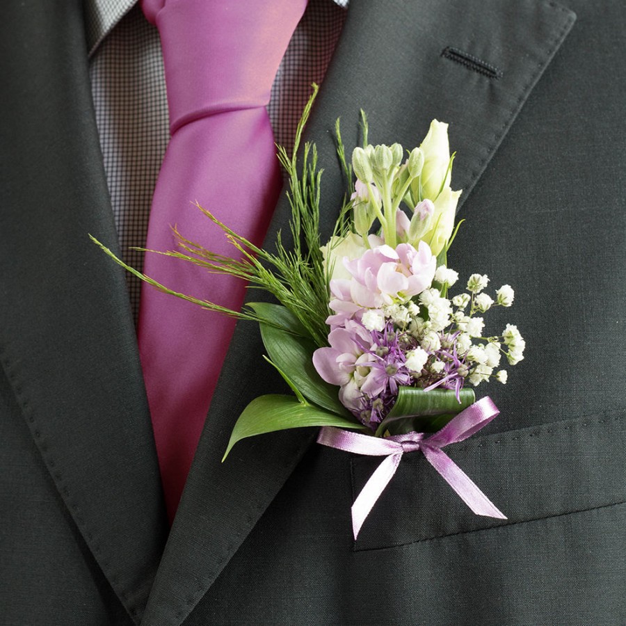 The combination of lisianthus and anemone was perfect. Florist South Wimbledon delivered a beautiful buttonhole on time.